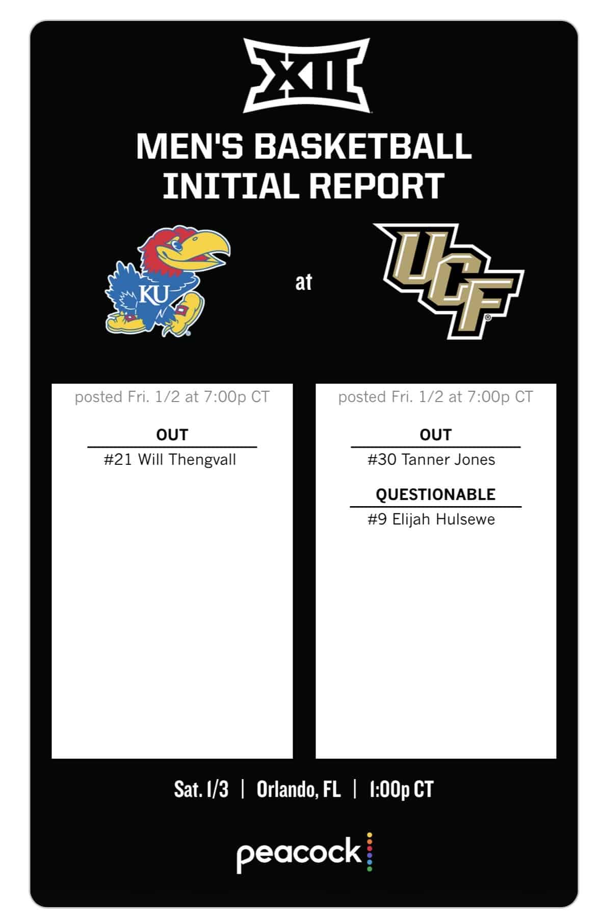 There will be another availability report coming out at 11:30 on the Big 12 website