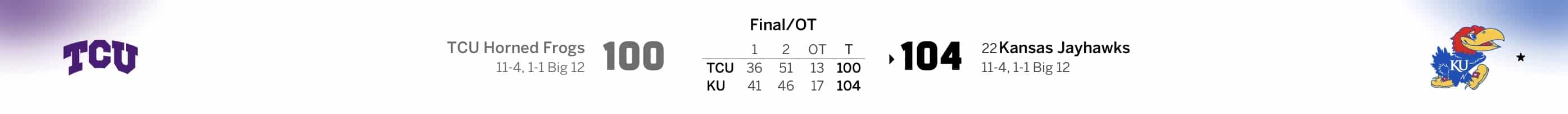 Kansas defeats TCU 104-100 in OVERTIME coming back from a 9 point deficit with 1:14 to go in regulation #kubball