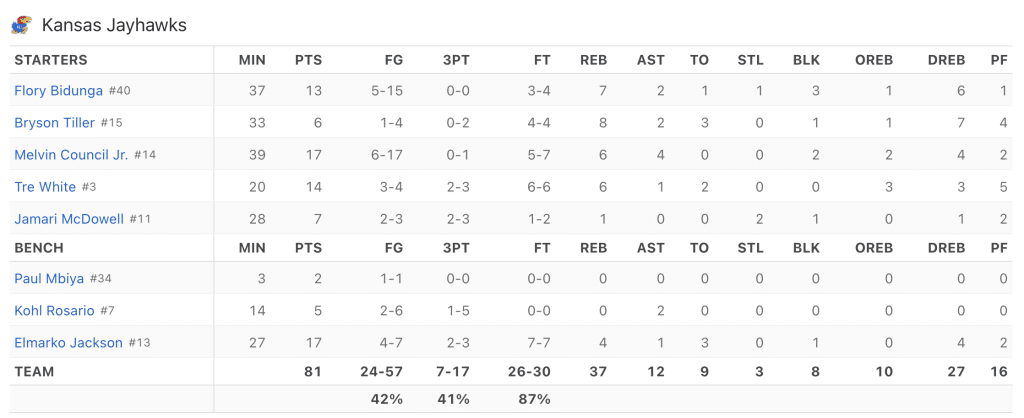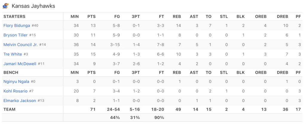 Flory Bidunga’s 18 points, 9 rebounds, 5 assists and 5 blocks lead Kansas past Notre Dame 71-61